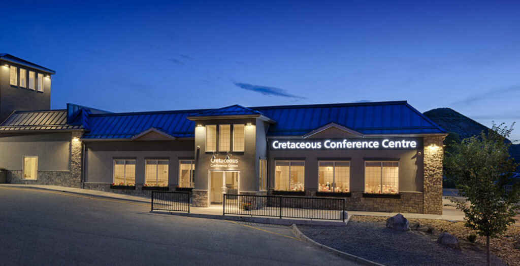 Whether you’re planning a small business conference or an executive board meeting, the Cretaceous Conference Centre has everything you need to make it a success. Choose between our banquet hall or one of our two smaller meeting rooms, and we’ll provide you with all the technical tools you’ll need including flip charts, projector and screen, podium, microphone and even a stage.